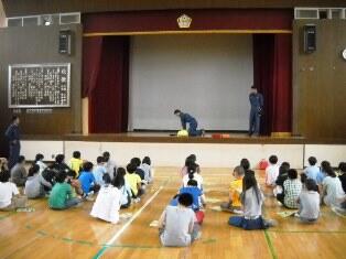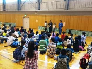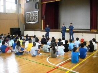 6月12日(月)全校朝会がありました。校長が水泳指導についての講話、生活指導担当教員が放課後の遊び方(駐車場や路上で遊ばない等)についての指導を行いました。