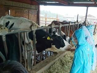 予定通り、八ヶ岳山荘に着きました。雨のため予定を変更して、体育館で開校式を行いました。ハイキングを取りやめ、牧場のバスで山荘まで来ていただきました。牧場で昼食をとり、昼食後は牧場体験やバターづくりを行いました。