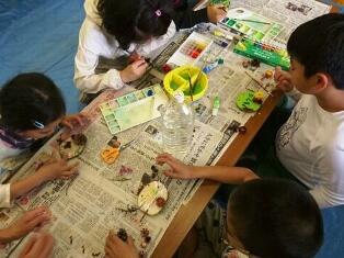 朝から青空が広がるよい天気です。午前中は山荘の小体育館で思い出のプレート作りを行いました。昼食後、閉校式を済ませ、山荘を出発し、川俣川で釣り体験を行いました。