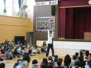 2月18日(火)2校時、オリンピック・パラリンピック教育推進事業の取組として、新体操元オリンピック代表選手、東京女子体育大学教授秋山エリカ様にお越しいただき、全校児童を対象とした講演会を実施しました。新体操の基本や用具の使い方について実技を披露していただきながら教えていただきました。また、新体操を始めたきっかけや新体操を通して学んだ「失敗は成功の基」についてお話しいただきました。