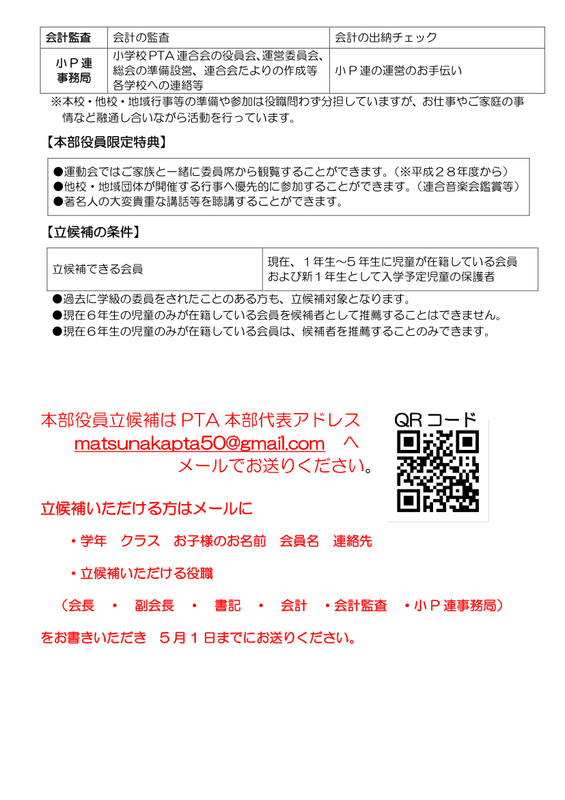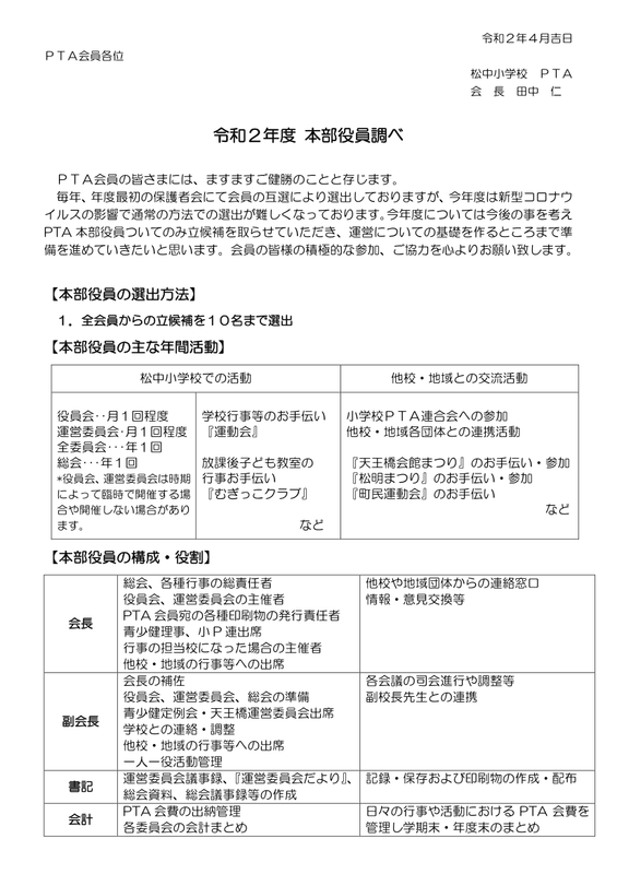 今回からはペーパーレス化やPTA本部役員の負担軽減もかねてメール配信とホームページにアップしていく頻度を多くしていければと思っております。