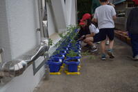 正面玄関のところにある「ムーギーガーデン」地域の方やくるプレの方が手入れをしてくれています。そこに3年生が理科で育て、観察していたひまわりを植えてくれました。今は、少しヒョロヒョロしていますが、根をおろし、黄色に輝きたくましく育ってくれることを楽しみにしています。
