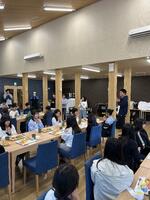 今回、本校としては初めて応募し、当選することができました。立川市の近隣地域で活躍されている起業家の方をアテンドしてもらい、「合同会社ハチコク社」の福田様と仲様にご来校いただいて、授業をしていただきました。