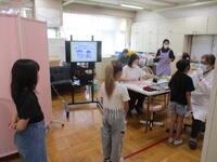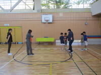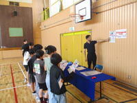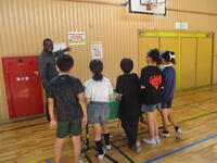 教室で映像での座学を行った後、体育館でグループに分かれて、心肺蘇生法の実地訓練を行いました。子どもたちは、最初は緊張からか動きが硬かったですが、グループで回を重ねるごとにしっかりとした動きを見せてくれました。