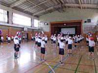 現在、学習発表会当日に向け、学年練習に取り組んでいます。