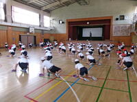あいにく前日からの雨の影響で校庭での訓練ができませんでしたが、体育館等を使って様々な訓練を行いました。