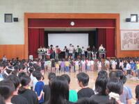 最後に音楽委員会の伴奏で校歌を歌いました。