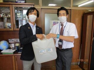 立川青年会議所の方から消毒用のアルコールを寄付していだきました。