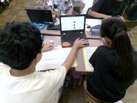 そろばんにも一の位、十の位、だけでなく小数第一位があり、小数も表すことができると知り3年生は興味津々でした。小数や大きい整数でも、同じように計算ができることが分かりました。明日のそろばんも楽しみですね。