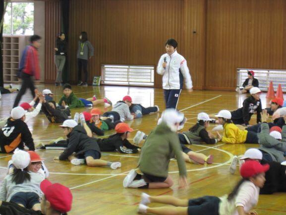 4年生は、次々と繰り出される秋山先生の指示に従って、運動量たっぷり楽しく活動しました