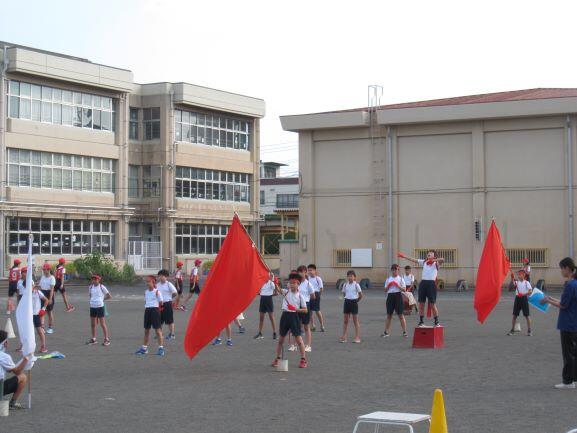 応援団は今朝から、校庭にでて練習です。
