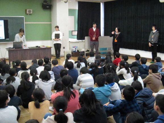 本日の1校時に視聴覚室で、4年生の「認知症サポーター養成講座」の授業が行われました。北部西かみすな地域包括支援センターの方々と立川市社会福祉協議会の地域福祉コーディネーターの方をゲストティーチャーとしてお迎えして、認知症のことについて学びました。脳の中の記憶をつかさどる〈海馬〉の仕組みについてゲームなどを通して楽しく学んだりしました。自分の周りには様々な人がいて、どのようにかかわっていくのかを考える良いきっかけとなる一つの学習でした