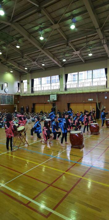 本日の集会で、和太鼓クラブが練習の成果を披露してくれました。