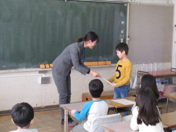 約3週間ぶりに校舎内に子供たちの声が響きわたり、学校に魂が入ったようでした。久しぶりに会った子供たちは、皆、ニコニコと笑顔で嬉しそうでした。この3週間、子供たちは本当によく頑張って過ごしてくれたと思います。直接顔を見ることができない校内放送による修了式でしたが、どの学級もしっかりと話を聞いてくれたようです。その後、担任の先生から通知表をいただく表情も、穏やかな感じが多かったです。