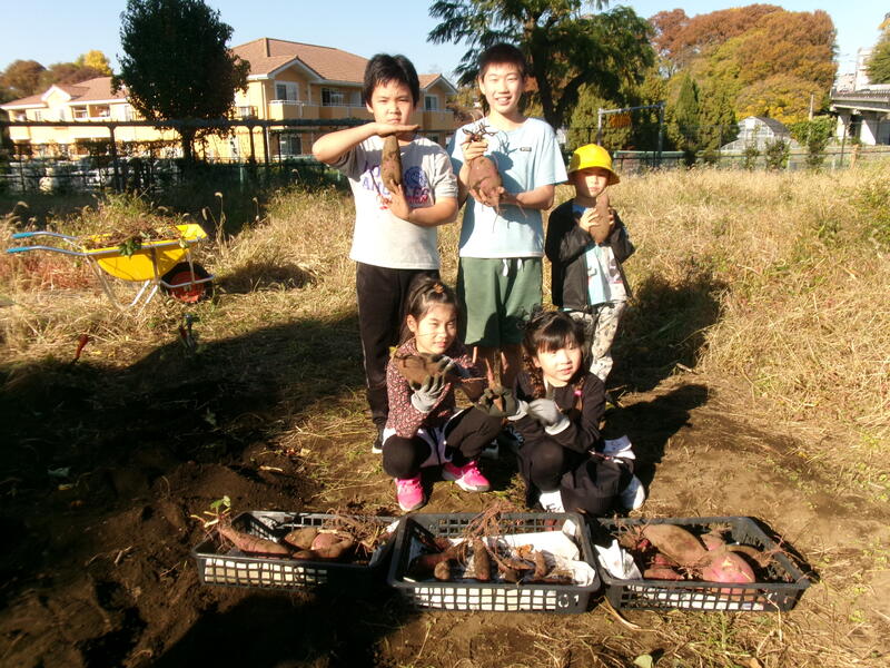 たくさんのさつまいもを一生懸命掘り出しました。大きいさつまいもや変な形のさつまいもに大喜びでした。