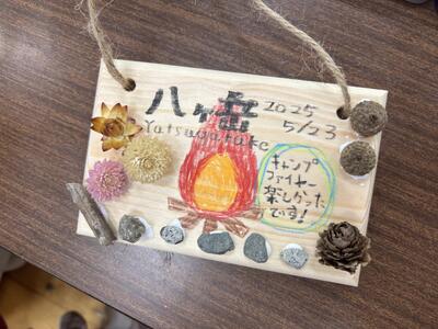 キャンプファイヤー、星空、美しい山々の景色、ハイキングで流れていた川、牛さんとの触れ合い等、3日間の活動を思い出しながら、残しておきたい思い出をプレートに表現しました。