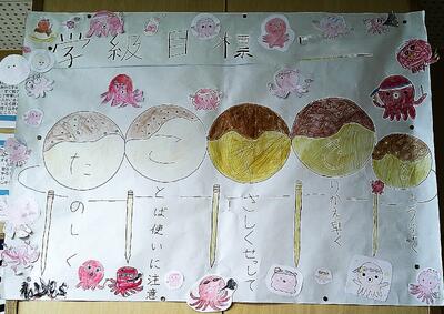 このクラスは、今年の漢字と自分の一年の漢字漢字を考えたそうです。今年の漢字はなかなか鋭いですが、やはり自分への漢字は素晴らしいです。