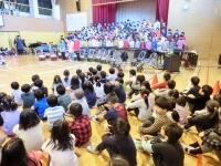 12月11日(水)の音楽集会で、6年生が合唱・合奏の発表をしました。今年から連合音楽会がなくなったのですが、いつものこの時期に合わせて曲を作り上げてきました。体育館の前面に舞台を作ったのでスペースがなく、5年生はギャラリーからの観賞です。合唱「奇跡」は高音部がとてもきれいに出ていて、聞く側が引き込まれるような仕上がりでした。