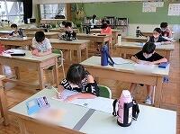 7月30日、終業式前日の下校の様子です。臨時休校があったので、授業時数を確保するために終業式の日まで授業です。そのせいか道具類の持ち帰りがギリギリで、この日もみんな大荷物です。前日までの雨の下校ではなく、天気の良い下校なので、表情が明るく見えます。