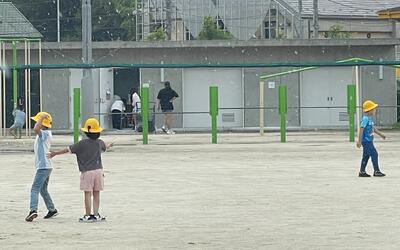 中休みに遊ぶ子どもたち。特に出演が終わっ