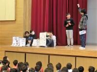 1月30日(水)の児童集会は、委員会発表でした。この日は、美化委員会とエコ・ボラティア委員会の発表でした。エコ・ボラ委員会は、2学期から続けているあいさつ運動のことをコントで、美化委員会はゴミの分別についてクイズ形式で発表・注意の呼びかけをしました。