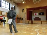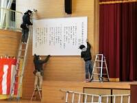 明日は、開校式典、校歌・校章お披露目会です。式典は地域の方や市の方が中心なので、保護者の方には8:35~低学年の部、9:00~高学年の部で発表します。天気予報は雪ですが、ぜひご来校いただき、できたての校歌・校章をお楽しみください。写真は、今日のリハーサル、準備の様子です。