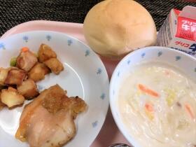 5日(火)ハイジパン、とりにくのマーマレード焼き、ポテトリヨネーズ、白菜のクリームスープ、牛乳