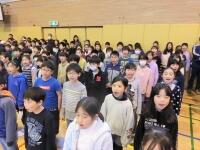 2月9日(水)の音楽集会の様子です。「みんな大好き」を元気よく歌いました。「♪ともだちが好き 先生が好き みんな大好き」って、いい歌詞ですね。開校式典の最後に、4~6年生がサプライズで歌ったら、涙を流して聞いていた方が何人もいました。