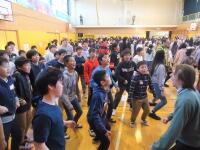 2月12日(火)に、5,6年生は「ヤングアメリカンズ」を体験しました。ヤングアメリカンズはアメリカから来た若者たちが音楽公演とアウトリーチ(出張授業)で、子どもたちとショーを作るというユニークな教育活動です。歌や踊り、英語の苦手な子もいる中の開催に不安もありましたが、はじめからハイテンションなアメリカの若者たちに圧倒されながらも、あっという間にその魅力で、子どもたちもノリノリに。日頃あまり見られない子どもたちの様子に、教員の方がビックリでした。