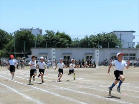 小学校に入学して1年たつと、グンと力強い走りができるようになります。そして50mを一気に駆け抜けられるようになります。