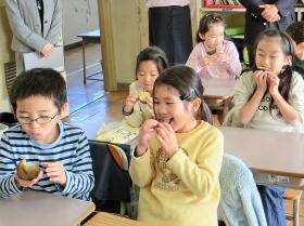 1年生は、生活科で育てたお芋を収穫して、そのあと絵手紙風に描いたり、ふかして味見をしたりしました。(職員室や校長室にもお裾分けがありました。)絵は教室前にはってあります。どのお芋も美味しそうです。