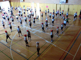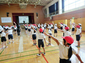 3,4年生の表現の練習風景です。人数も多いので、迫力があります。