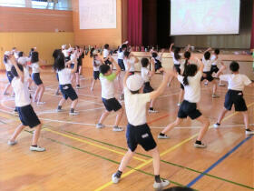 3年生の表現の練習風景です。音がなくても、楽しそうな雰囲気が伝わってきます。
