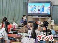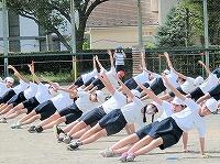 校庭から、小太鼓?のにぎやかなリズムが聞こえてくると、5年生の表現の練習です。「届けよう!! 沖縄へ!! 負けない心と元気 」というテーマで、沖縄の伝統舞踊エイサーを踊ります。沖縄の小学校とパソコンで交流し、成果を見てもらうそうです。本場の子供たちに見せても恥ずかしくない仕上がりになるか、ちょっとプレッシャーです。
