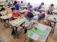 1年生の授業風景です。図工はローラーを使っての作品作りでした。国語は「おむすびころりん」の音読の役割決めをしました。最後は、書写のコンクールで表彰された子です。朝礼がないので、校長室に行って、校長先生に表彰してもらいました。