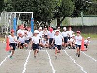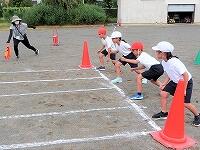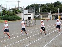 10月2日の運動会に向けて、各学年で体育の時間にタイム測定が行われています。この暑さの中ですが、子供たちが全力で走る姿は見ているほうも、元気をもらえる気がします。写真は3年生。