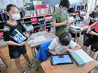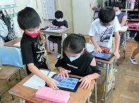 GIGAスクール構想は文部科学省が発表したプロジェクトで、小中学校の児童・生徒1人に1台のパソコンと、全国の学校に高速大容量の通信ネットワークを整備し、多様な子どもたちに最適化された創造性を育む教育を実現するという構想です。立川市でも今年中に4年生以上、来年3月までに1~3年生に、1人1台のパソコンを整備する予定です。これが実現すると、タブレットとはまた少し違う授業が見られるようになるはずです。写真は4年生の総合的な学習の時間の授業で、バリアフリーについて調べていました。