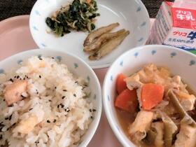 17日(木)里芋ご飯、肉豆腐、わかさぎの唐揚げ、ナムル、牛乳