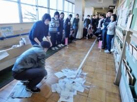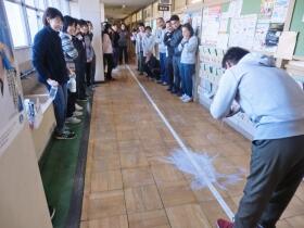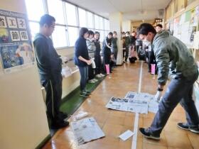この時期はインフルエンザだけでなく、流行性胃腸炎(ノロウイルス等)の流行も心配な季節です。児童が嘔吐した場合、それを適切に処理することが感染を防ぎます。3学期の始めに、適切な処理がおこなえるように教員研修を実施しました。ワックスを嘔吐物に見立てて練習しましたが、思ったよりも広範囲に飛散するすることにビックリしました。