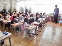 1月21日(月)に「一日校長」を九中学区地域学校共同本部コーディネーター、放課後子ども教室代表の山田拓男さんにお願いしました。全校朝会で自己紹介をしたあと「自分の身は自分で守る」ことの大切さについて講話をしていただき、そのあと授業の様子をみていただきました。