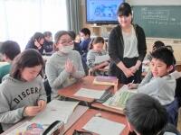 立川九中の英語の先生が若葉台小に来て、6年生の担任と一緒に授業をする「小中連携英語」も1月11日で3回目でした。子どもたちも教員もだいぶ慣れ、スムーズな新校でした。英語で自己紹介をする文を作りました。