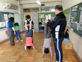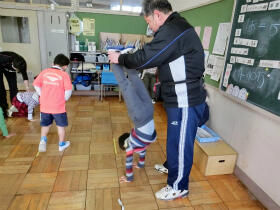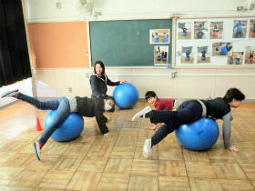 たんぽぽ学級で取り組んでいる体幹トレーニングの様子です。体幹を鍛えると、姿勢や呼吸がよくなり、集中力のアップや健康維持につながります。バランスボールに座って仕事をしているテレビを見ましたが、職員室ではちょっと難しいかなぁ…。