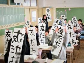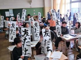 始業式の日には冬休みに書いた、書き初めを提出しました。上手にかけている子も、苦労の跡が見える子もと、いろいろのようです。