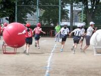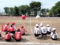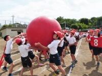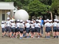 全校競技、大玉送りの練習風景です。結果は僅差(わずかの差)だったので、当日が楽しみです。