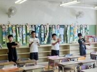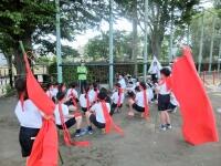 運動会まであと4日。少ない練習時間の中で、各学年の練習にも熱が入ります。2年生はフープを使っての表現です。隊形移動と同時に、フープの扱いがポイントです。