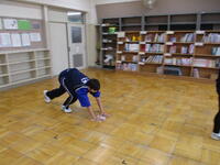 教室内ではバリケードづくりを確認し、実際に組みました。