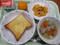 今日は、シュガートースト、きのこのトマトペンネ、ポトフ、みかんでした!