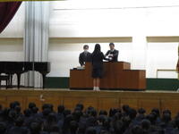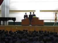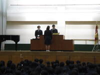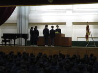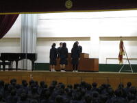 始業式の前には、校歌の指揮者・伴奏者の代替わりが紹介されました。