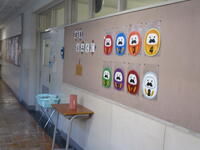 1、3年生の昇降口近くの掲示板に「一中キャラクターの案」が掲示されています。