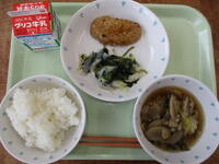 今日は、きのこごはん、五目卵焼き、豆豚汁でした!